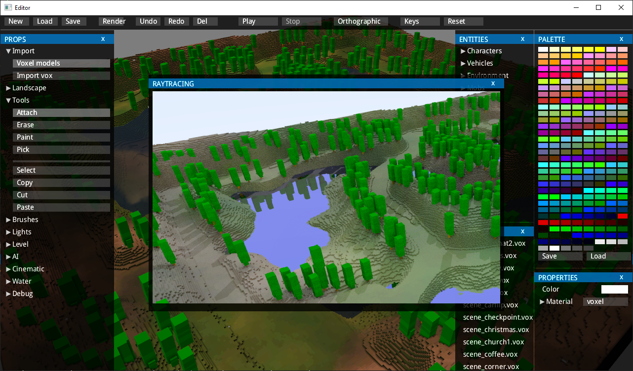 I was reading the excellent Ray Tracing in One Weekend and decided to give it a try with my voxel engine/editor. The book uses spheres as primitives for a scene, but I wanted to use voxels.
