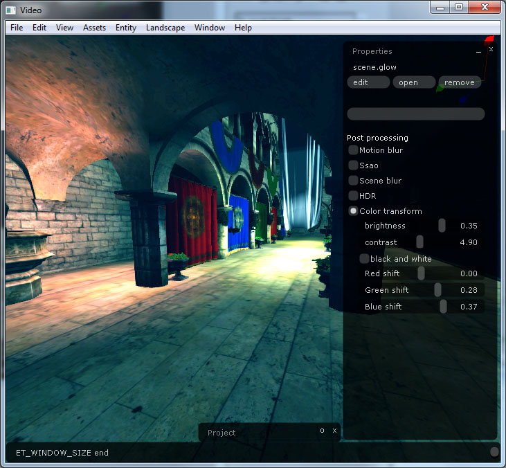 Currently supported transformations are contrast, brightness, black and white, red, green, blue shifts, saturation will be added later. All transformations work in a same step, so adding, for example contrast to brightness will not slow down it in 2 times.